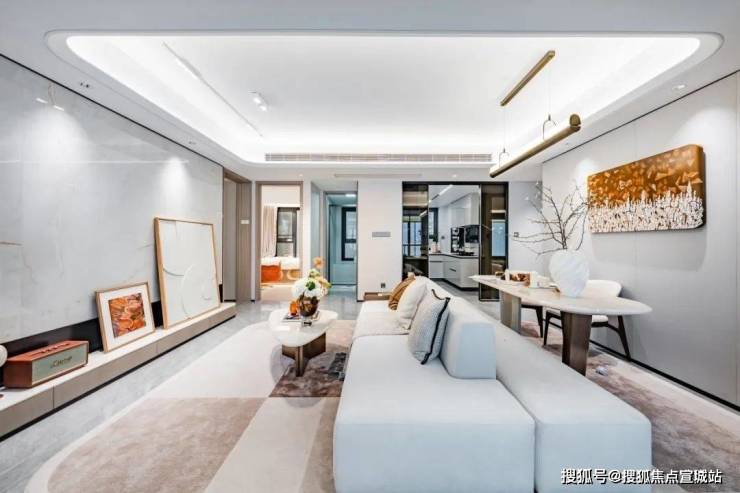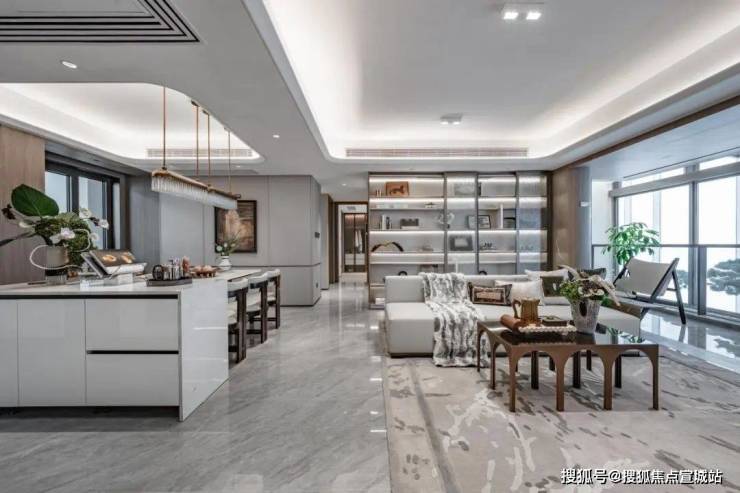 经典优雅的横厅设计,招商中旅·揽阅售楼处电话:是一家人的共享公区,也是待客会友的第一空间,聚会Party轻松容纳,抬眼便是阔景阳台外的无边美景,温馨相伴的喜悦,总能让人乐在心田。