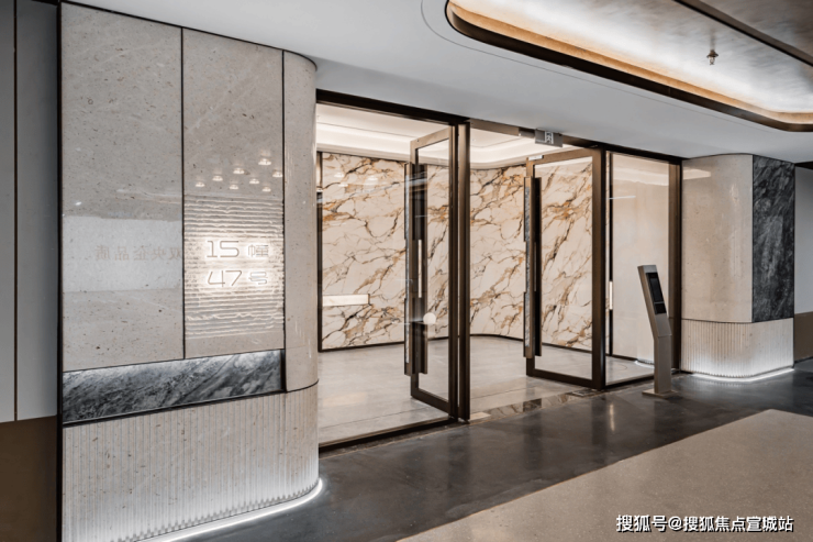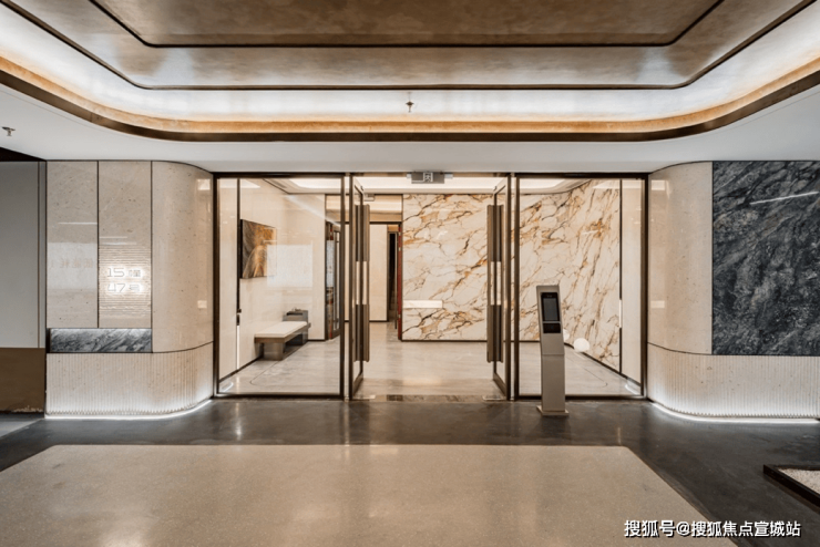 融入星光顶&星光灯带交融设计的标准,运用美术馆级的米黄色石材搭配古铜色铝板,并臻选有“奢石之王”美誉之称的奢石背景墙。